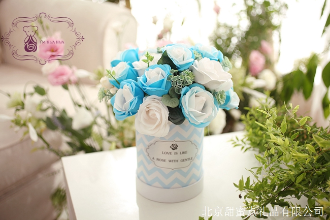 21朵藍(lán)色抱抱桶香皂花
