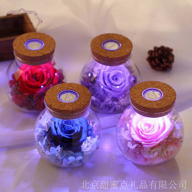 秋日傍晚,手提永生花七彩燈許愿瓶在靜謐的小路點(diǎn)亮,燈光下,愛人的臉龐也多了些許柔和,漆黑的夜空在燈光的照耀下也多了幾分神秘!